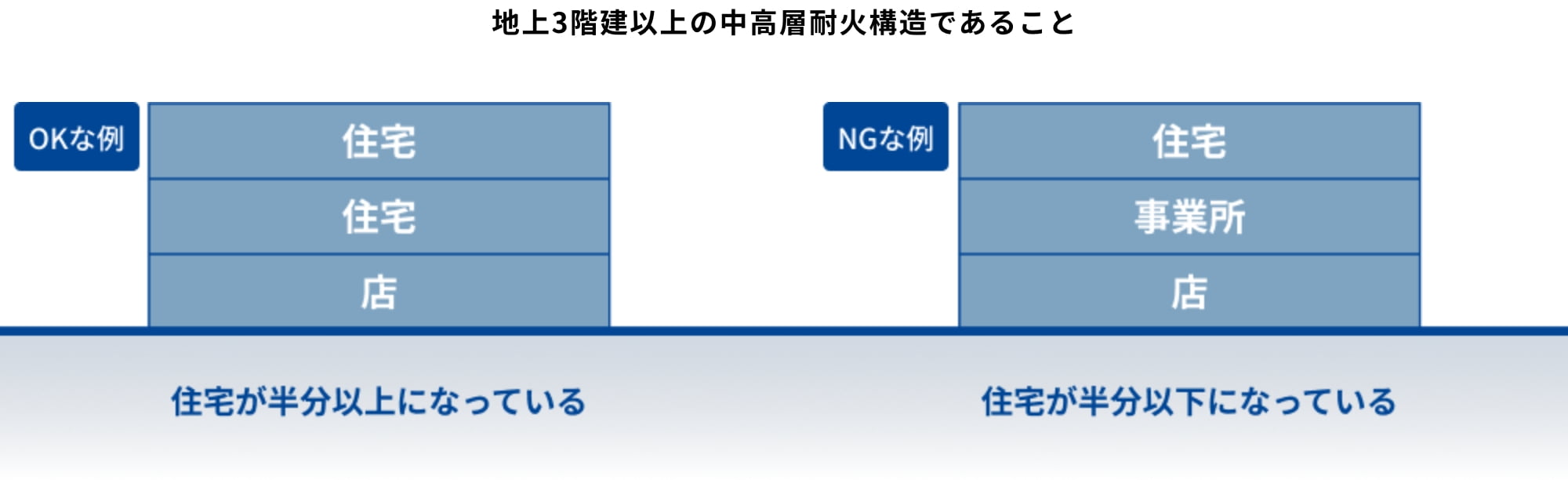| 建築する建物 | 地上3階以上の耐火構造もしくは準耐火構造の建物で、全体の1/2以上が住宅であるもの |