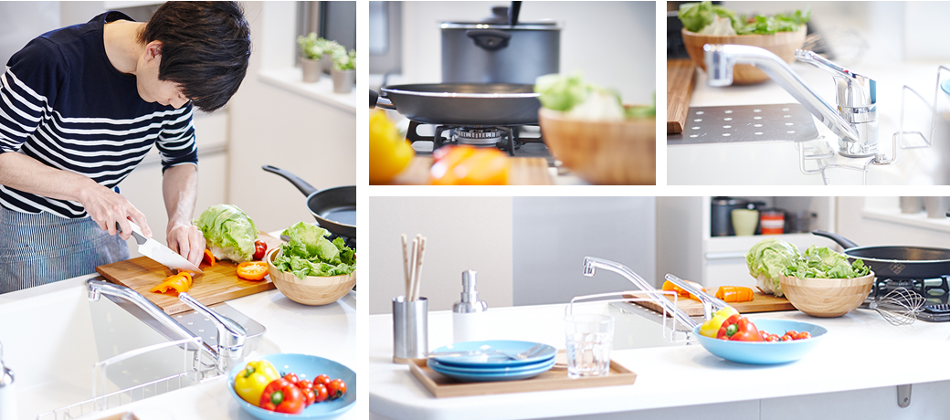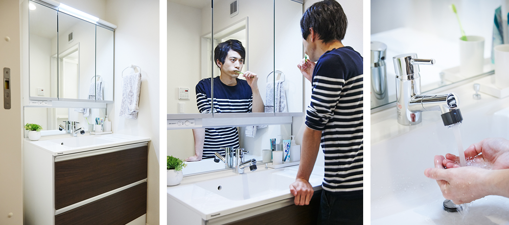 美味しいものを食べ歩きするのが好きだったんですけど、それが高じて今では自分で料理をすることが趣味になりました。どうせなら「キッチン設備の充実した部屋で」と思って、物件を探したんです。いろいろと物件を見ていると、キッチンだけでなく水回りの設備がしっかりとしているこの部屋をヘーベルメゾンで見つけました。