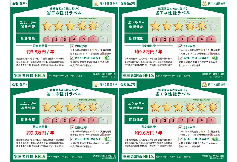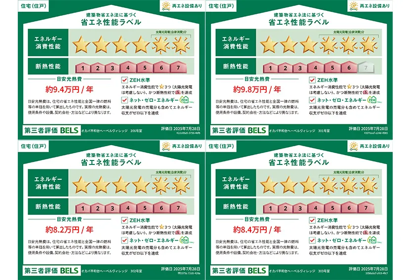 住棟55%削減、101号室46%削減、102号室47%削減、103号室49%削減、105号室51%削減、201号室56%削減、202号室60%削減、203号室52%削減、205号室57%削減、206号室59%削減、301号室55%削減、302号室59%削減、303号室57%削減、305号室56%削減、306号室58%削減 |