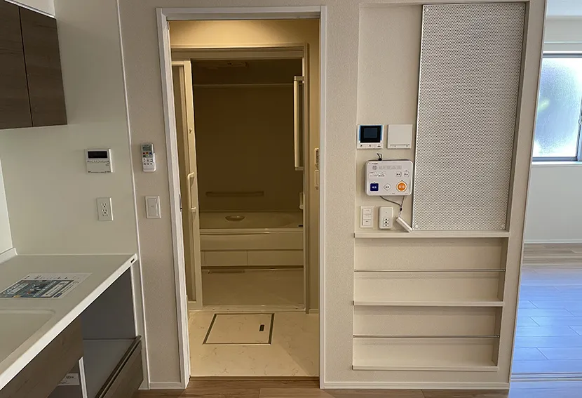 | 居室仕様設備 | キッチン(IHヒーター付)・エアコン・洗面化粧台・洗浄暖房便座付トイレ・緊急通報装置・コート掛け・玄関収納・収納・浴室(浴室乾燥暖房機能付)・自動火災報知機・洗濯機置き場・ベランダ物干しフック・室内物干しフック・録画機能付テレビドアホン・インターネット完備(wi-fi)・UHF/BS |