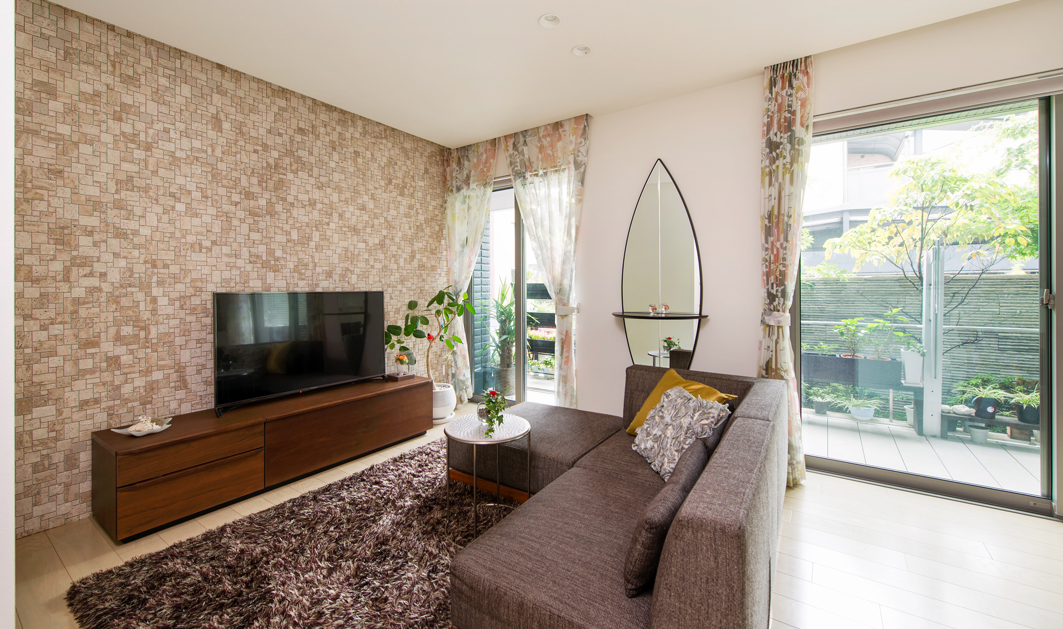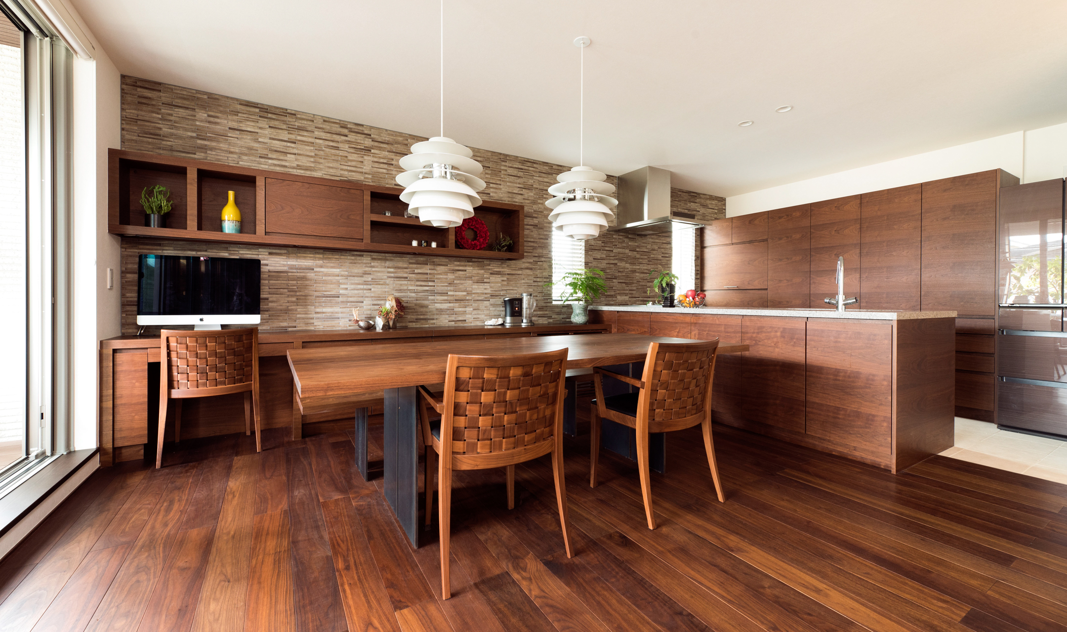 ウッディなインテリアで多彩な過ごし方を楽しむ、3階建て二世帯住宅