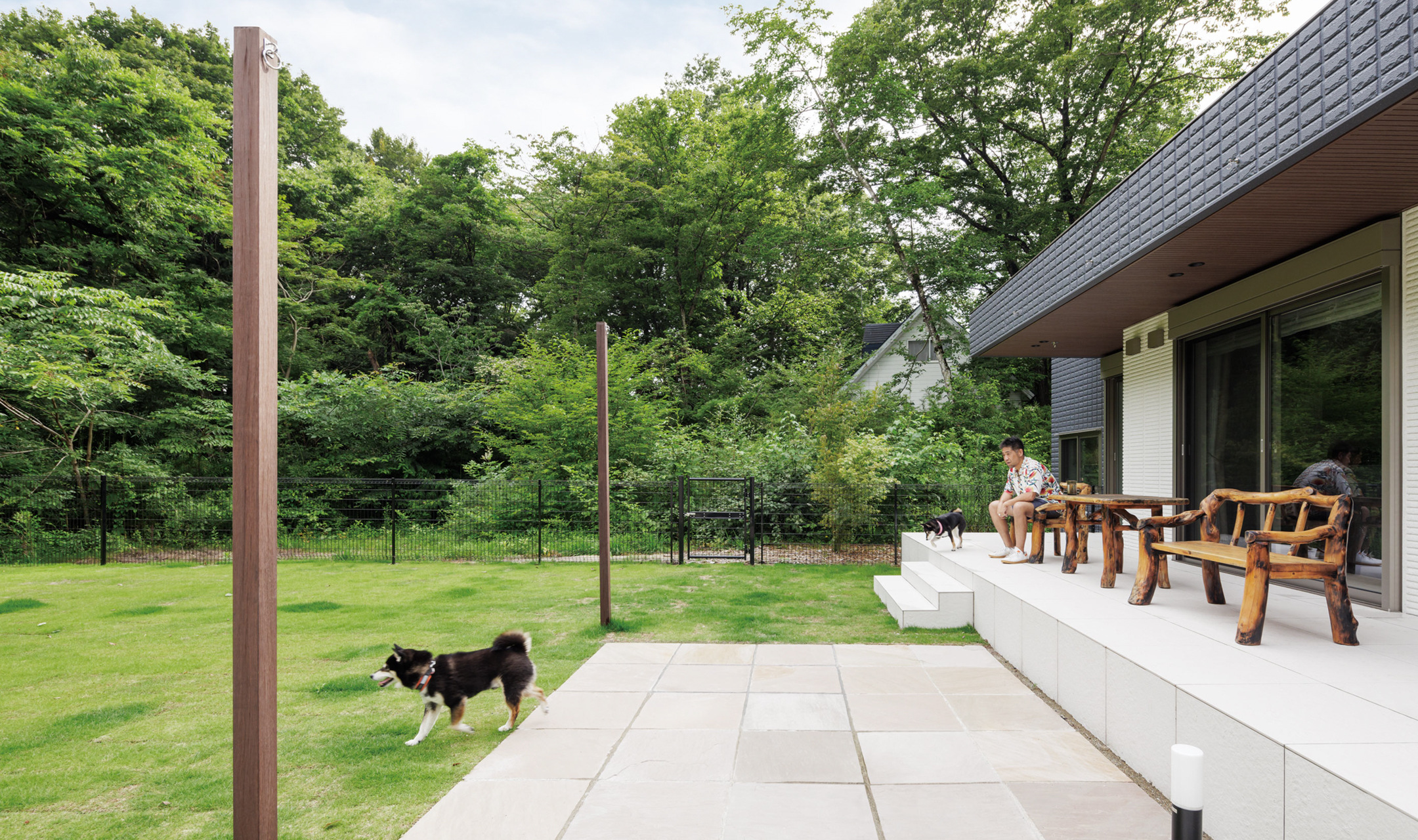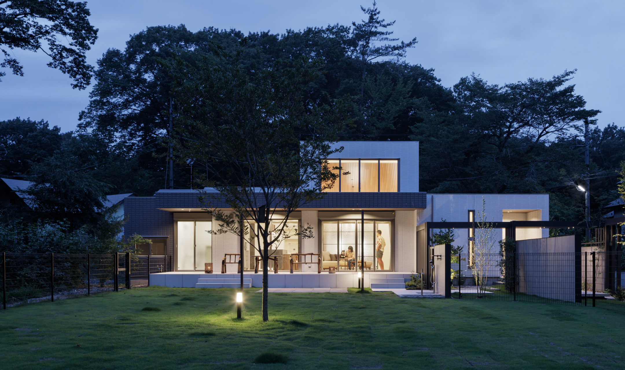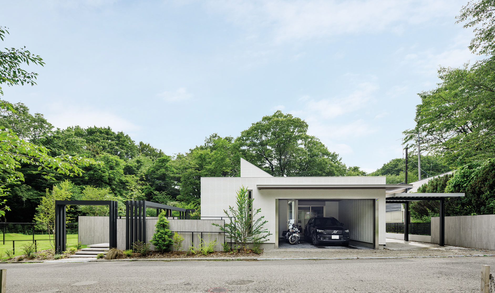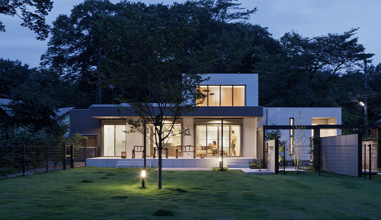 インナーガレージのある平屋の邸宅