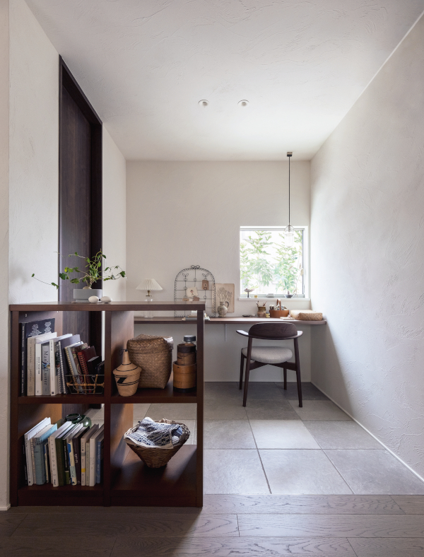 望の間:大型スクエア窓や高窓によって美しく切り取られた景色が、住まう人の心を和ませます。適度に明るさが絞られ、屋外からの視線をカットされた室内は、趣味や仕事に没頭できる空間となります。