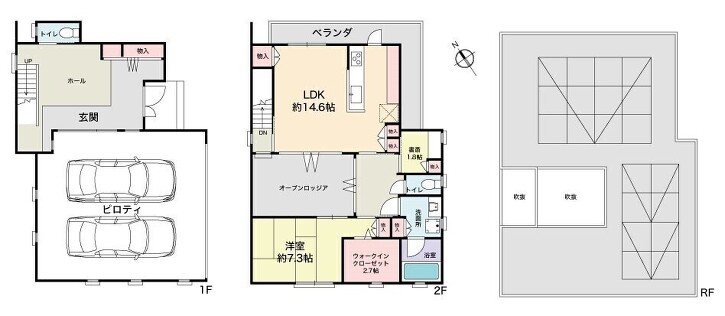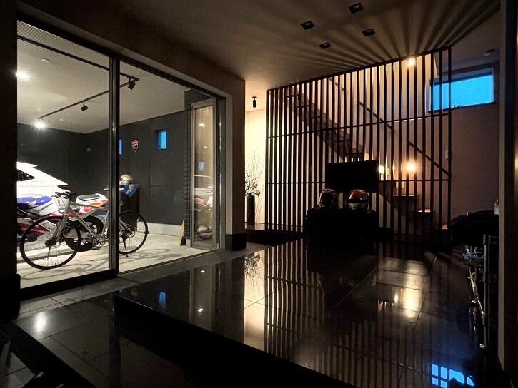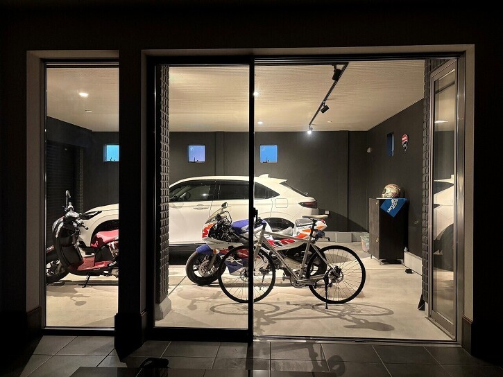 ・ビルトインスペースに車やバイクを停められます