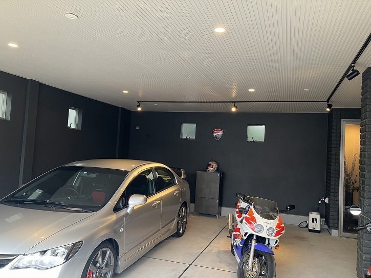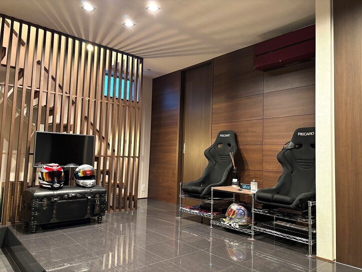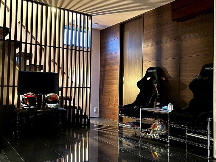 ・愛車のメンテナンスや趣味を思う存分楽しめる空間を実現した住まい。